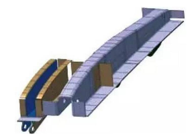 新型复合材料LIR不但包括提供整体吊耳的驱动翼肋,这些吊耳可固定襟翼驱动器,而且还包括可将装配组件固定在襟翼蒙皮的铆钉(见图1)。该团队的目标是简化LIR复杂的几何预成型,以便在除了预成型相对简单和低成本的地方之外确保其厚度一致,从而降低制造成本。该团队的解决方案是采用LIR 配置文件实现预成型铺放的自动化,从而最大限度降低了制造成本。