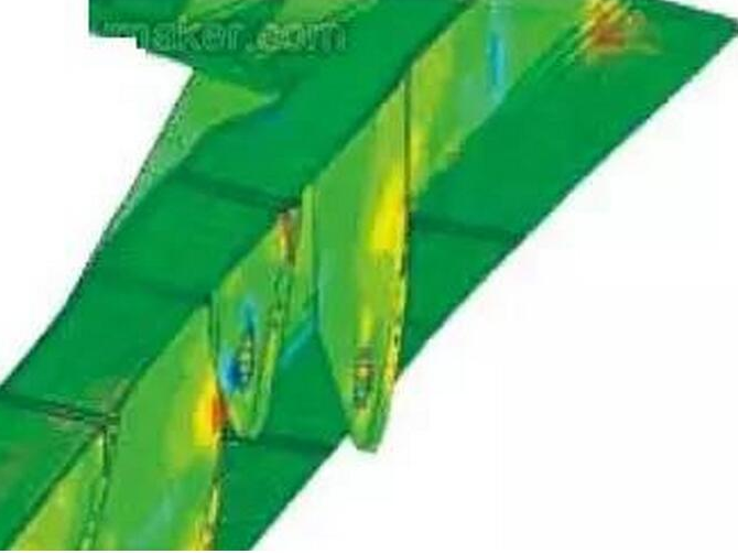 此外,工程设计团队还必需演示装配中使用的324个铆钉,其可将LIR与周边结构固定起来,并能够承受负载。Havar指出:“这不仅取决于所固定的结构,而且还取决于铆钉材料及其本身的尺寸。”为了实现这一点,每个铆钉都采用部件之间的弹性连接器建模。在一侧,铆钉固定在复合材料襟翼蒙皮上,另一侧其采用多点约束(MPC)固定,从而可在不同的蒙皮厚度上分配负载。分析得到的连接载荷用来计算蒙皮挤压实效和铆钉断裂的安全系数。