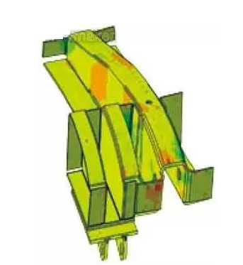 如果复合材料对设计未来更环保、更清洁的可持续性航空器非常重要,其具有更轻的重量、更高的燃料效率以及更少的排量,那么EADS合材料分析的结果就对各方面产生了积极的影响。对于LIR而言,面内及横向应力分量在新型复合材料设计容限之内(见图3);对于所有铆钉而言,连接LIR与周边结构的强度性能系数都已达标或超额达标;而对于复合材料吊耳而言,性能也在行业安全规范范围之内(见图4)。